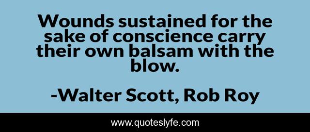 This page presents the quote "Wounds sustained for the sake of conscience carry their own balsam with the blow.". Author of this quote is Walter Scott, Rob Roy. This quote is about conscience, honour,.