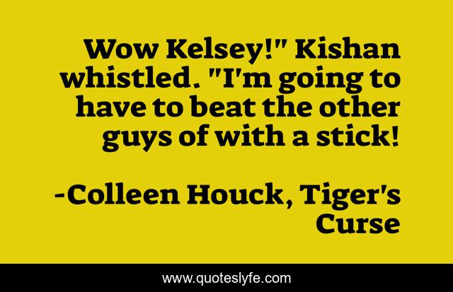 This page presents the quote "Wow Kelsey!" Kishan whistled. "I'm going to have to beat the other guys of with a stick!". Author of this quote is Colleen Houck, Tiger's Curse. This quote is about tigers, humor, tigers-curse, beauty,.