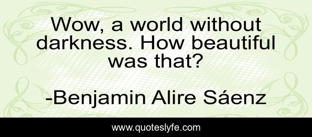 "Benjamin Alire Sáenz Quotes." Quoteslyfe.com, 2025. Fri. 05 Dec. 2025. <https://www.quoteslyfe.com/quote/Wow-a-world-without-darkness-How-beautiful-118826>.