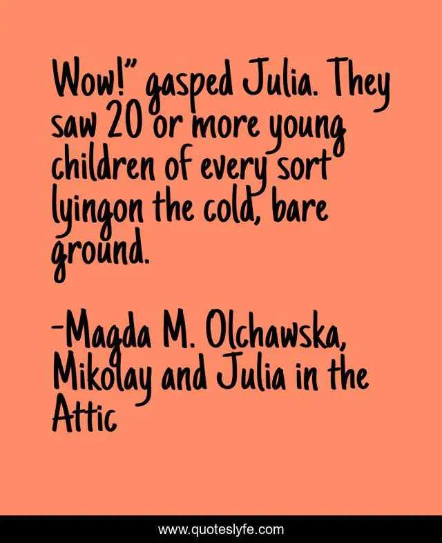 "Magda M. Olchawska, Mikolay and Julia in the Attic Quotes." Quoteslyfe.com, 2025. Mon. 08 Dec. 2025. <https://www.quoteslyfe.com/quote/Wow-gasped-Julia-They-saw-20-or-99432>.