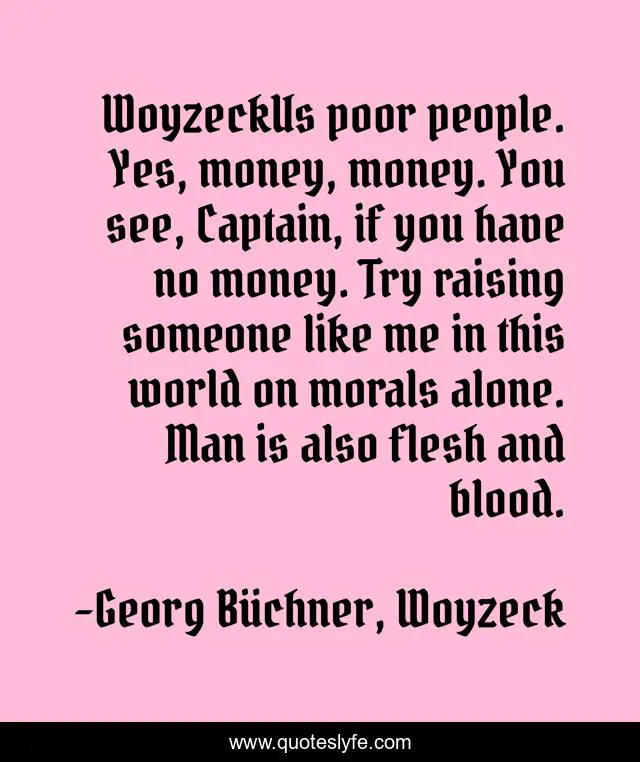 "Georg Büchner, Woyzeck Quotes." Quoteslyfe.com, 2025. Sun. 07 Dec. 2025. <https://www.quoteslyfe.com/quote/WoyzeckUs-poor-people-Yes-money-money-You-80412>.