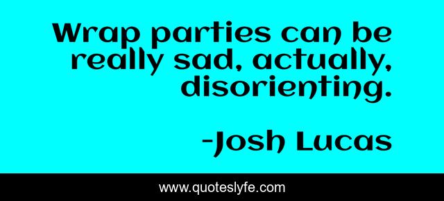 This page presents the quote "Wrap parties can be really sad, actually, disorienting.". Author of this quote is Josh Lucas. This quote is about wrap, actually, really,.