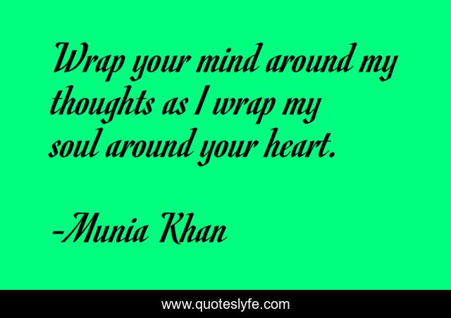 This page presents the quote "Wrap your mind around my thoughts as I wrap my soul around your heart.". Author of this quote is Munia Khan. This quote is about lovers, love, mind, soulmates, soul, romance, thoughts, wrap, romance-love,.