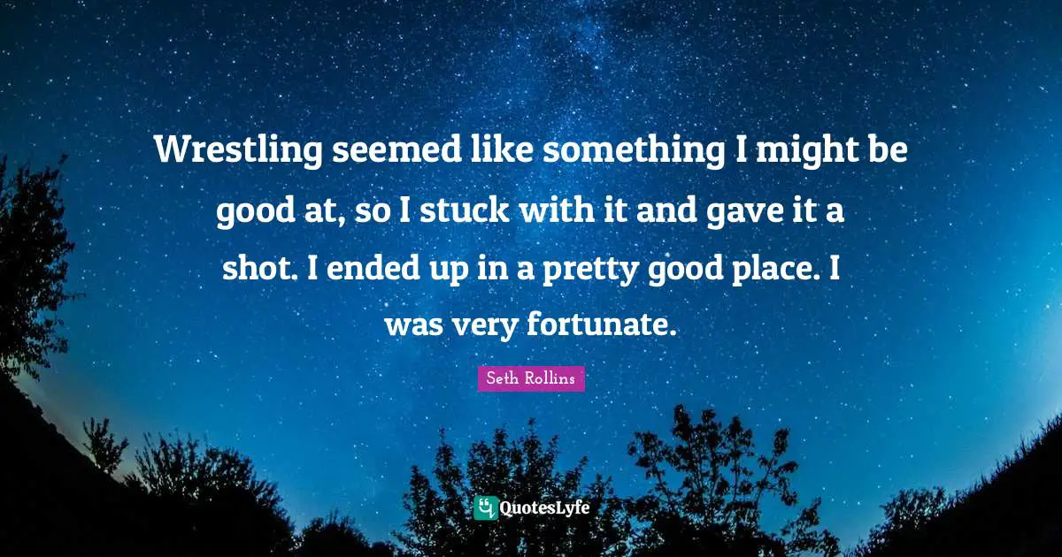 This page presents the quote "Wrestling seemed like something I might be good at, so I stuck with it and gave it a shot. I ended up in a pretty good place. I was very fortunate.". Author of this quote is Seth Rollins. This quote is about like something, wrestling, shots, good place, stuck, be good, might, fortunate,.