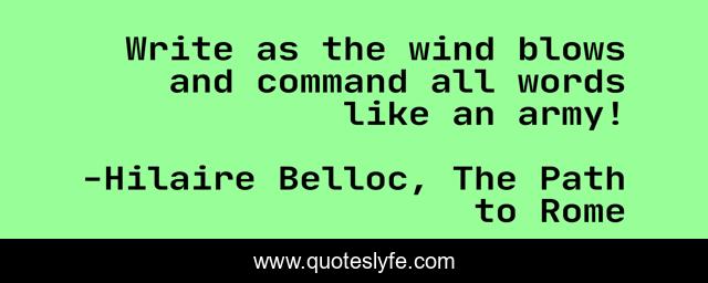 This page presents the quote "Write as the wind blows and command all words like an army!". Author of this quote is Hilaire Belloc, The Path to Rome. .
