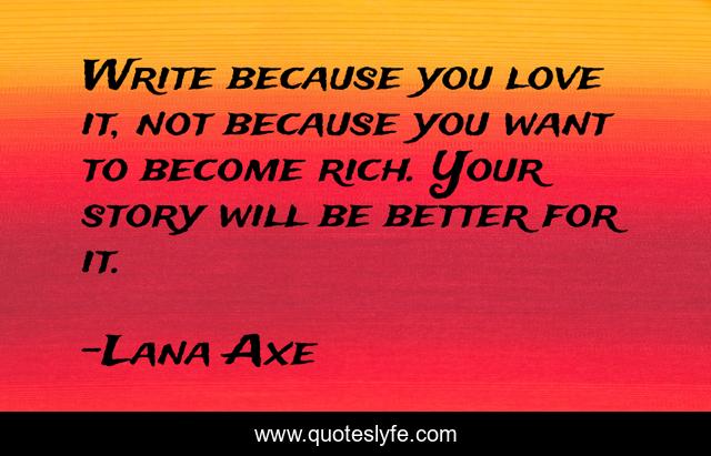 This page presents the quote "Write because you love it, not because you want to become rich. Your story will be better for it.". Author of this quote is Lana Axe. .