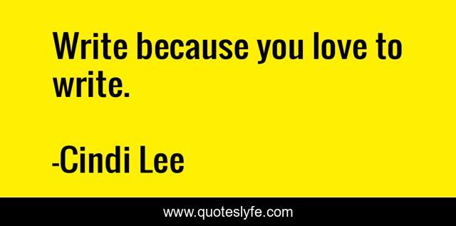 "Cindi Lee Quotes." Quoteslyfe.com, 2025. Sat. 06 Dec. 2025. <https://www.quoteslyfe.com/quote/Write-because-you-love-to-write-14360>.