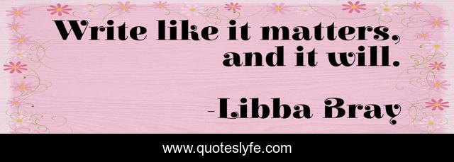 "Libba Bray Quotes." Quoteslyfe.com, 2025. Fri. 05 Dec. 2025. <https://www.quoteslyfe.com/quote/Write-like-it-matters-and-it-will-27366>.