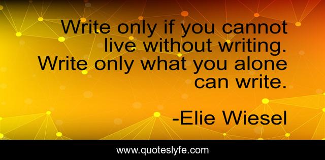 This page presents the quote "Write only if you cannot live without writing. Write only what you alone can write.". Author of this quote is Elie Wiesel. .
