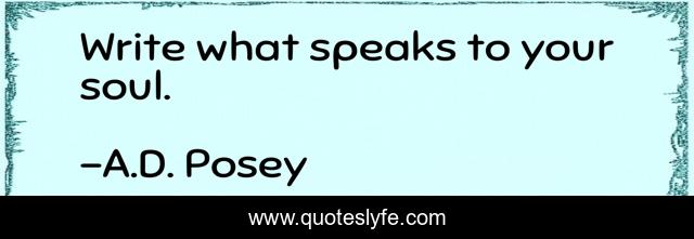 "A.D. Posey Quotes." Quoteslyfe.com, 2025. Fri. 05 Dec. 2025. <https://www.quoteslyfe.com/quote/Write-what-speaks-to-your-soul-63570>.