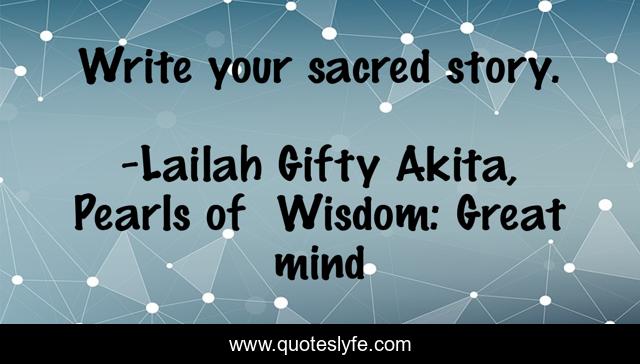 "Lailah Gifty Akita, Pearls of Wisdom: Great mind Quotes." Quoteslyfe.com, 2025. Mon. 08 Dec. 2025. <https://www.quoteslyfe.com/quote/Write-your-sacred-story-48212>.