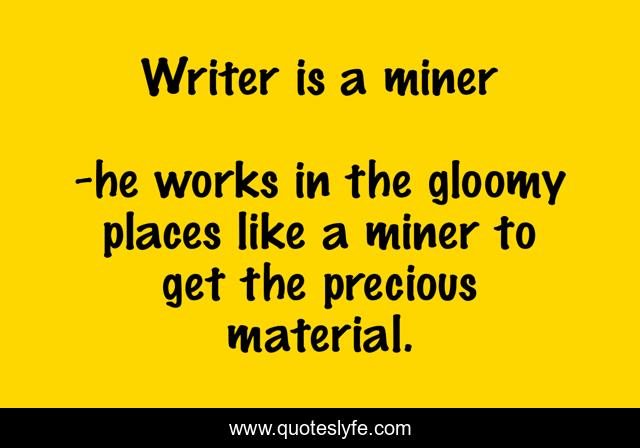 This page presents the quote "Writer is a miner". Author of this quote is he works in the gloomy places like a miner to get the precious material.. .