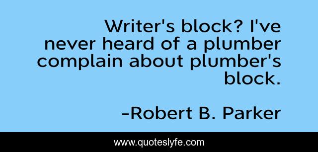 This page presents the quote "Writer's block? I've never heard of a plumber complain about plumber's block.". Author of this quote is Robert B. Parker. .