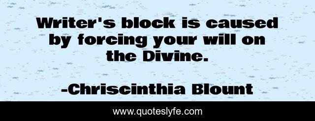 This page presents the quote "Writer's block is caused by forcing your will on the Divine.". Author of this quote is Chriscinthia Blount. This quote is about divine-truth, writer-s-block, spirituality, writers, inspirational, quotes-to-live-by, enthusiasm, quotes-about-writing,.