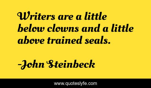 This page presents the quote "Writers are a little below clowns and a little above trained seals.". Author of this quote is John Steinbeck. .