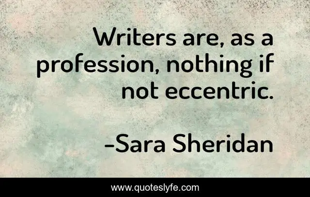 This page presents the quote "Writers are, as a profession, nothing if not eccentric.". Author of this quote is Sara Sheridan. This quote is about eccentricity, eccentric, writers, profession,.