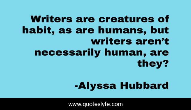 This page presents the quote "Writers are creatures of habit, as are humans, but writers aren’t necessarily human, are they?". Author of this quote is Alyssa Hubbard. This quote is about writer, inspiration, writers-life,.