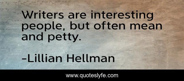 This page presents the quote "Writers are interesting people, but often mean and petty.". Author of this quote is Lillian Hellman. .