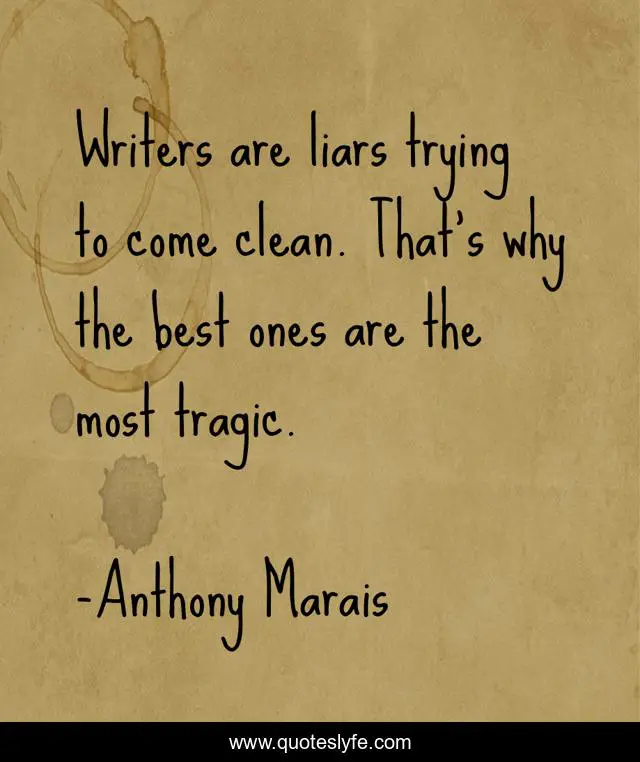 "Anthony Marais Quotes." Quoteslyfe.com, 2025. Fri. 05 Dec. 2025. <https://www.quoteslyfe.com/quote/Writers-are-liars-trying-to-come-clean-150848>.