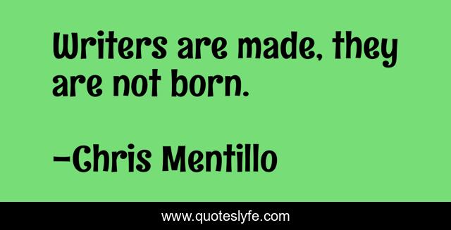 "Chris Mentillo Quotes." Quoteslyfe.com, 2025. Sun. 07 Dec. 2025. <https://www.quoteslyfe.com/quote/Writers-are-made-they-are-not-born-22784>.