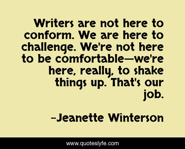 "Jeanette Winterson Quotes." Quoteslyfe.com, 2025. Sat. 06 Dec. 2025. <https://www.quoteslyfe.com/quote/Writers-are-not-here-to-conform-We-28000>.