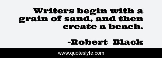 This page presents the quote "Writers begin with a grain of sand, and then create a beach.". Author of this quote is Robert Black. This quote is about sand, creation, beach, writers, writing,.