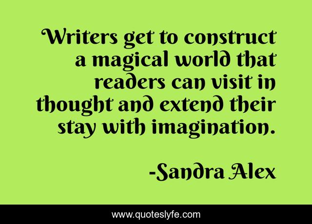"Sandra Alex Quotes." Quoteslyfe.com, 2025. Fri. 05 Dec. 2025. <https://www.quoteslyfe.com/quote/Writers-get-to-construct-a-magical-world-187076>.