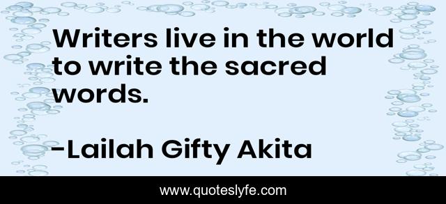 This page presents the quote "Writers live in the world to write the sacred words.". Author of this quote is Lailah Gifty Akita. This quote is about writers, creativity, writing,.