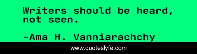 "Ama H. Vanniarachchy Quotes." Quoteslyfe.com, 2025. Mon. 08 Dec. 2025. <https://www.quoteslyfe.com/quote/Writers-should-be-heard-not-seen-151090>.