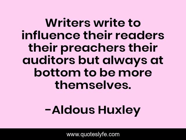 This page presents the quote "Writers write to influence their readers their preachers their auditors but always at bottom to be more themselves.". Author of this quote is Aldous Huxley. This quote is about writers, writing,.