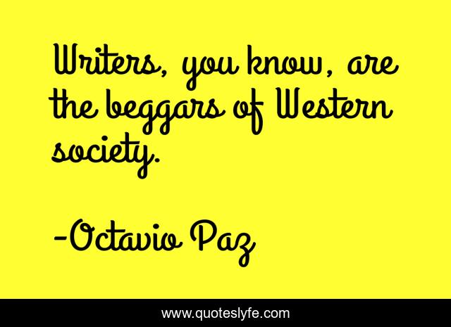This page presents the quote "Writers, you know, are the beggars of Western society.". Author of this quote is Octavio Paz. .