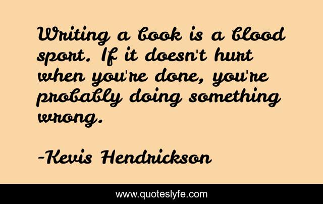 This page presents the quote "Writing a book is a blood sport. If it doesn't hurt when you're done, you're probably doing something wrong.". Author of this quote is Kevis Hendrickson. This quote is about enthusiasm, writing, inspirational, writing-advice,.