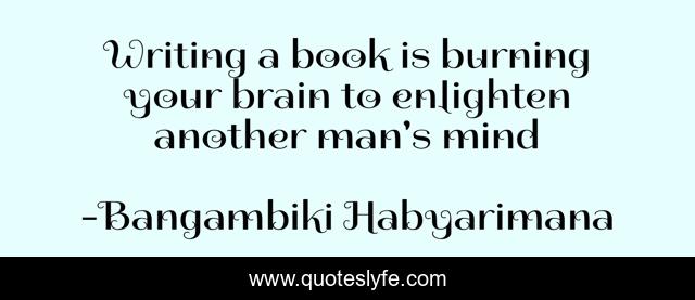 This page presents the quote "Writing a book is burning your brain to enlighten another man's mind". Author of this quote is Bangambiki Habyarimana. .