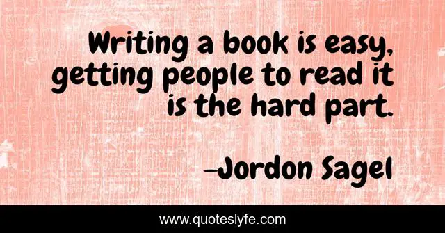 This page presents the quote "Writing a book is easy, getting people to read it is the hard part.". Author of this quote is Jordon Sagel. This quote is about marketing, writing,.
