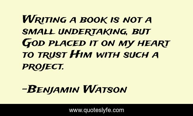 This page presents the quote "Writing a book is not a small undertaking, but God placed it on my heart to trust Him with such a project.". Author of this quote is Benjamin Watson. This quote is about heart, god, writing,.