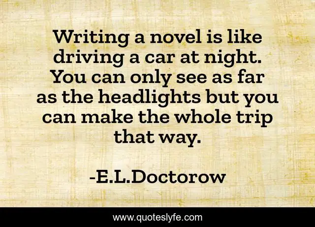 "E.L.Doctorow Quotes." Quoteslyfe.com, 2025. Sun. 07 Dec. 2025. <https://www.quoteslyfe.com/quote/Writing-a-novel-is-like-driving-a-194155>.