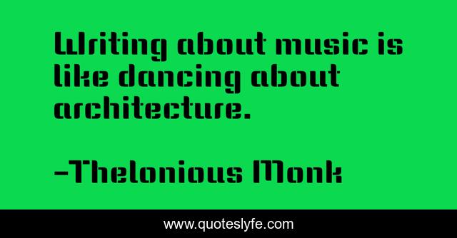 "Thelonious Monk Quotes." Quoteslyfe.com, 2025. Sat. 06 Dec. 2025. <https://www.quoteslyfe.com/quote/Writing-about-music-is-like-dancing-about-79123>.