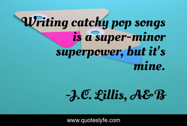 This page presents the quote "Writing catchy pop songs is a super-minor superpower, but it's mine.". Author of this quote is J.C. Lillis, A&B. This quote is about music, songs,.