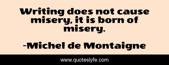 This page presents the quote "Writing does not cause misery, it is born of misery.". Author of this quote is Michel de Montaigne. This quote is about stephen-king, misery, montaigne, writing,.