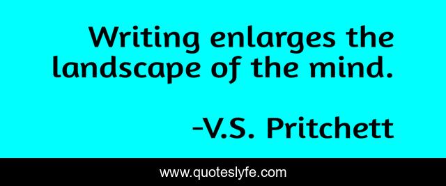 This page presents the quote "Writing enlarges the landscape of the mind.". Author of this quote is V.S. Pritchett. .