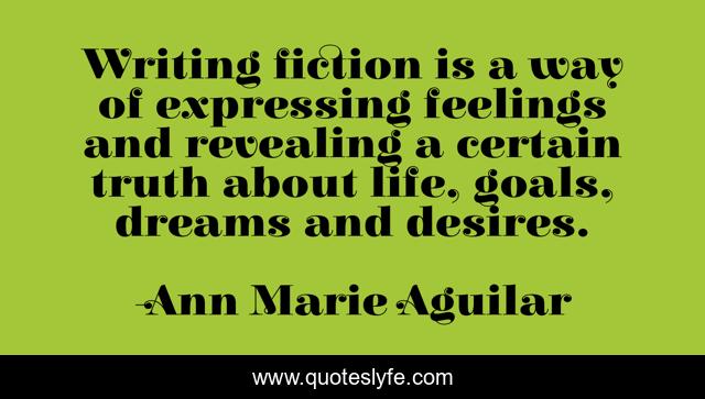 This page presents the quote "Writing fiction is a way of expressing feelings and revealing a certain truth about life, goals, dreams and desires.". Author of this quote is Ann Marie Aguilar. .