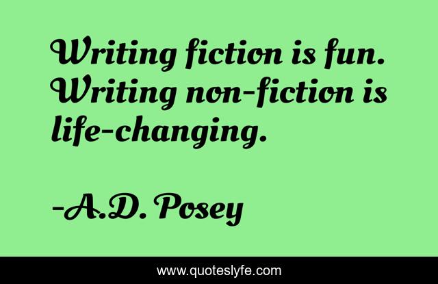 This page presents the quote "Writing fiction is fun. Writing non-fiction is life-changing.". Author of this quote is A.D. Posey. This quote is about non-fiction, storytelling, storytellers, fiction, write, writers, ad-posey, nonfiction, inspirational,.