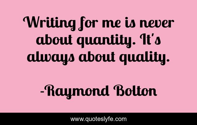 This page presents the quote "Writing for me is never about quantity. It's always about quality.". Author of this quote is Raymond Bolton. .