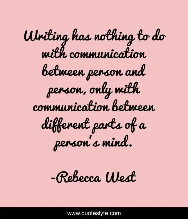 This page presents the quote "Writing has nothing to do with communication between person and person, only with communication between different parts of a person's mind.". Author of this quote is Rebecca West. This quote is about person, mind, writing,.