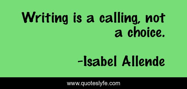This page presents the quote "Writing is a calling, not a choice.". Author of this quote is Isabel Allende. .