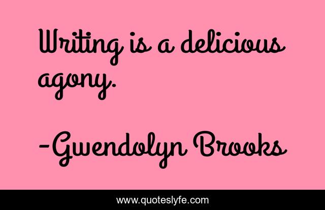 "Gwendolyn Brooks Quotes." Quoteslyfe.com, 2025. Mon. 08 Dec. 2025. <https://www.quoteslyfe.com/quote/Writing-is-a-delicious-agony-26955>.