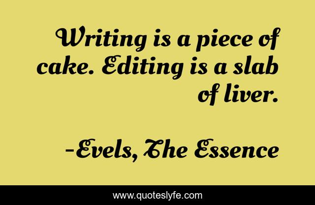 This page presents the quote "Writing is a piece of cake. Editing is a slab of liver.". Author of this quote is Evels, The Essence. This quote is about erotic, love-story,.
