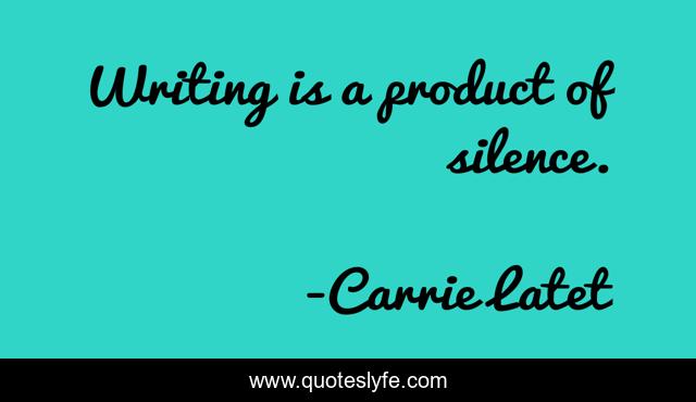This page presents the quote "Writing is a product of silence.". Author of this quote is Carrie Latet. This quote is about silence, writing,.