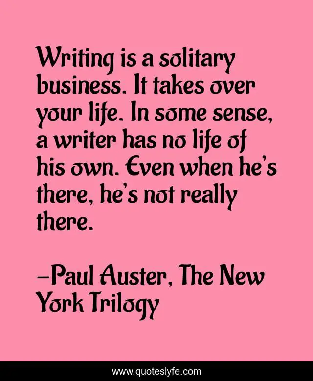 "Paul Auster, The New York Trilogy Quotes." Quoteslyfe.com, 2025. Fri. 05 Dec. 2025. <https://www.quoteslyfe.com/quote/Writing-is-a-solitary-business-It-takes-27442>.
