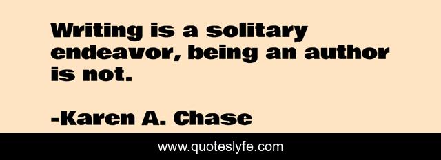 This page presents the quote "Writing is a solitary endeavor, being an author is not.". Author of this quote is Karen A. Chase. This quote is about writing, publishing-books, writing-advice,.